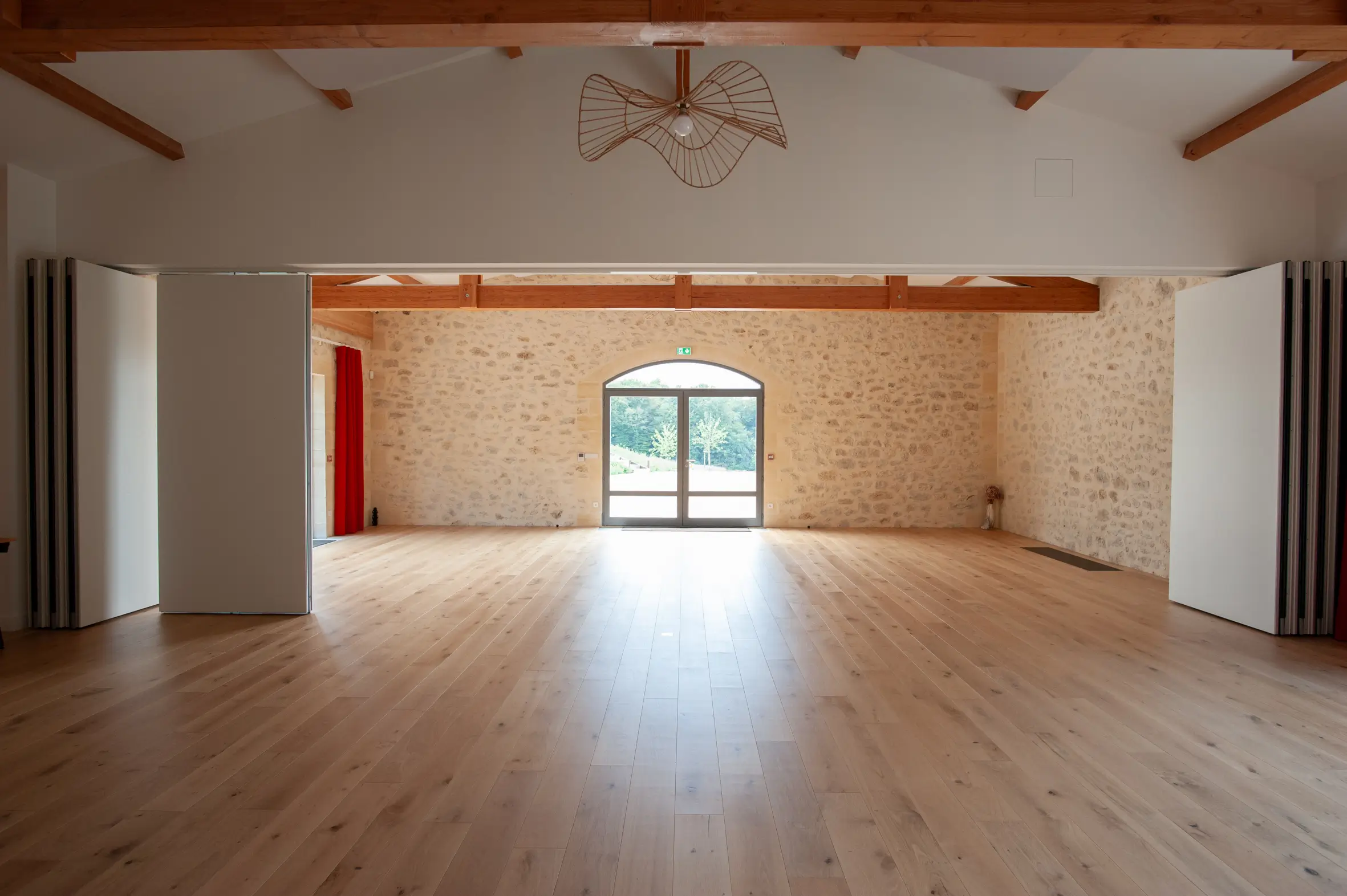 La grange de 150 m², entièrement équipée pour vos séances de yoga, est l’endroit idéal pour vos ateliers et séminaires d’entreprise : danse, chant, yoga, méditation, sophrologie, team-building, etc.